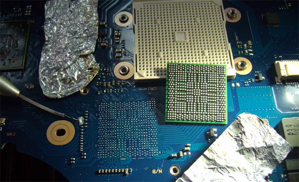 Replacement of the north bridge, south bridge, video chip (replacement of BGA elements)